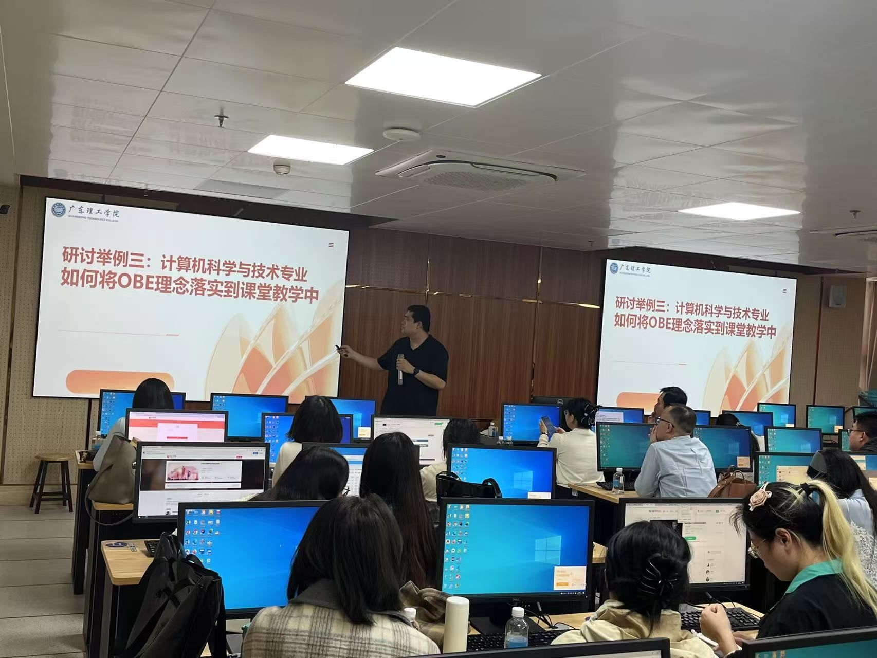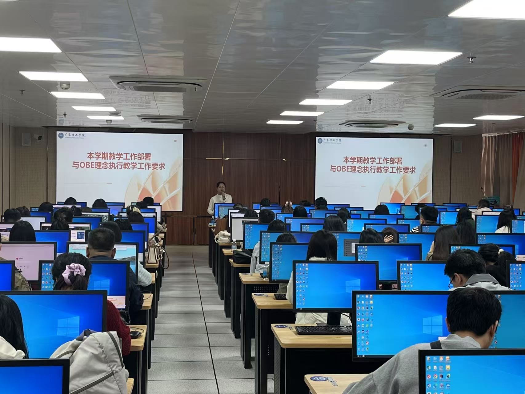 会议议程一,梁慧仪副经理就本学期教学工作进行部署,着重介绍OBE(Outcome-Based Education,成果导向教育)理念,要求各教学单位熟悉课程教学大纲,确保OBE理念落实到课堂教学中。梁经理以电子商务专业为例,与大家一起进行了深入的研讨和交流。