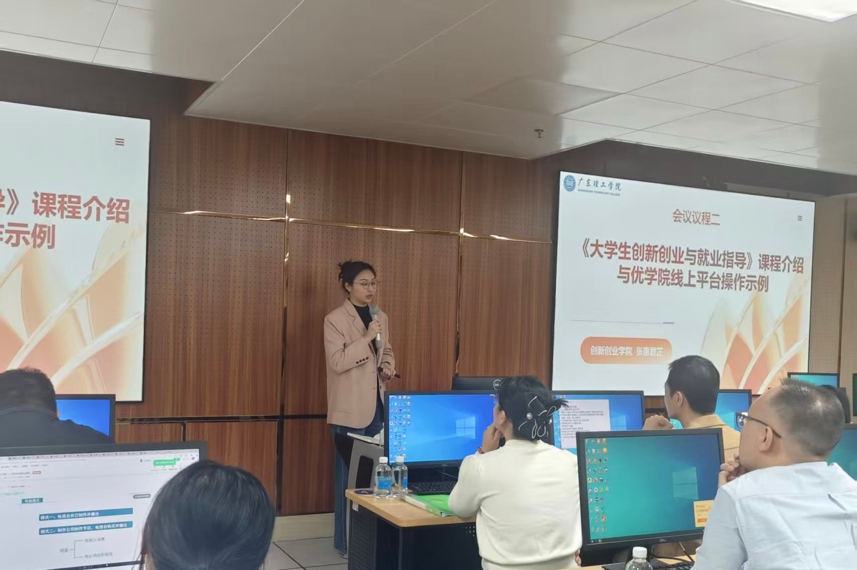会议议程二,9728太阳集团张惠君芷老师对本学期的《老员工创新创业与就业指导》课程进行了详细介绍,并现场演示了优公司线上平台的操作方法。张惠君芷教师就课程的考核项目和成绩评定方法进行了详细讲解,帮助教师们更好地把握教学重点和难点。
